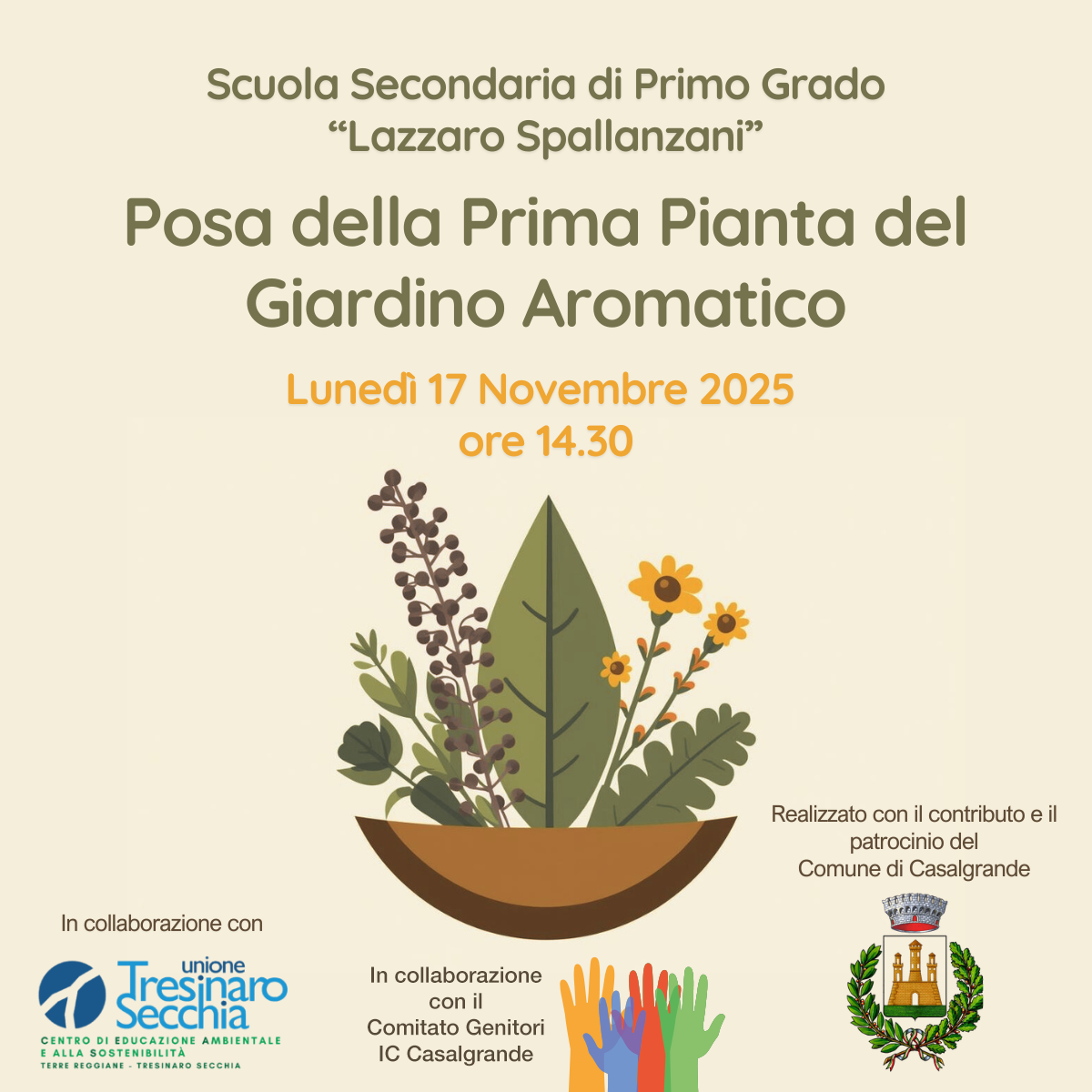 Lunedì 17 novembre 2025, alle 14.30, si terrà la cerimonia di posa della prima pianta del nuovo Giardino Aromatico presso la Scuola Secondaria di Primo Grado “Lazzaro Spallanzani”. Un momento simbolico e partecipato che coinvolgerà studenti, insegnanti e famiglie, per promuovere la cura del verde, l’educazione ambientale e la sostenibilità.
