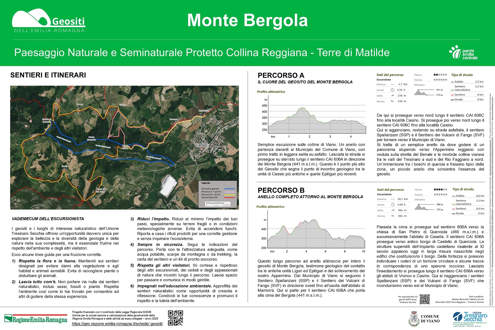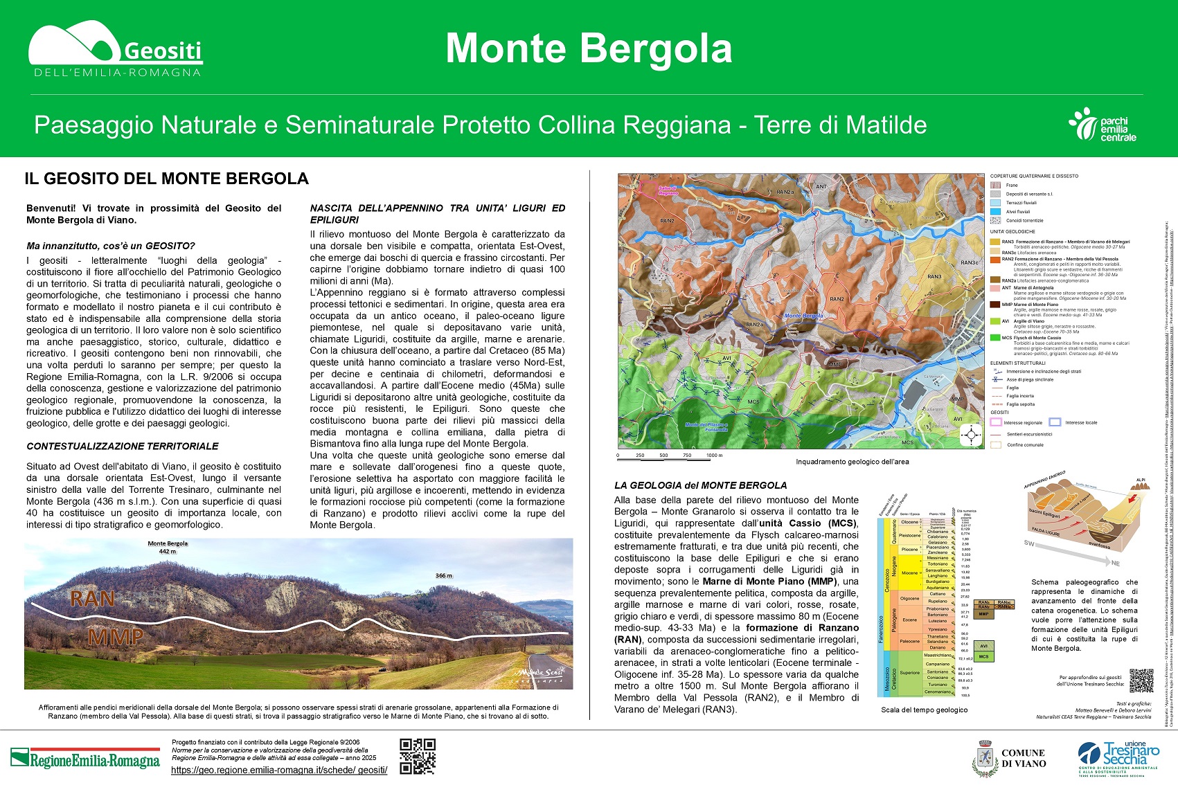 Situato ad Ovest dell'abitato di Viano, il geosito è costituito da una dorsale orientata Est-Ovest, lungo il versante sinistro della valle del Torrente Tresinaro, culminante nel Monte Bergola (436 m s.l.m.). Con una superficie di quasi 40 ha costituisce un geosito di importanza locale, con interessi di tipo stratigrafico e geomorfologico.