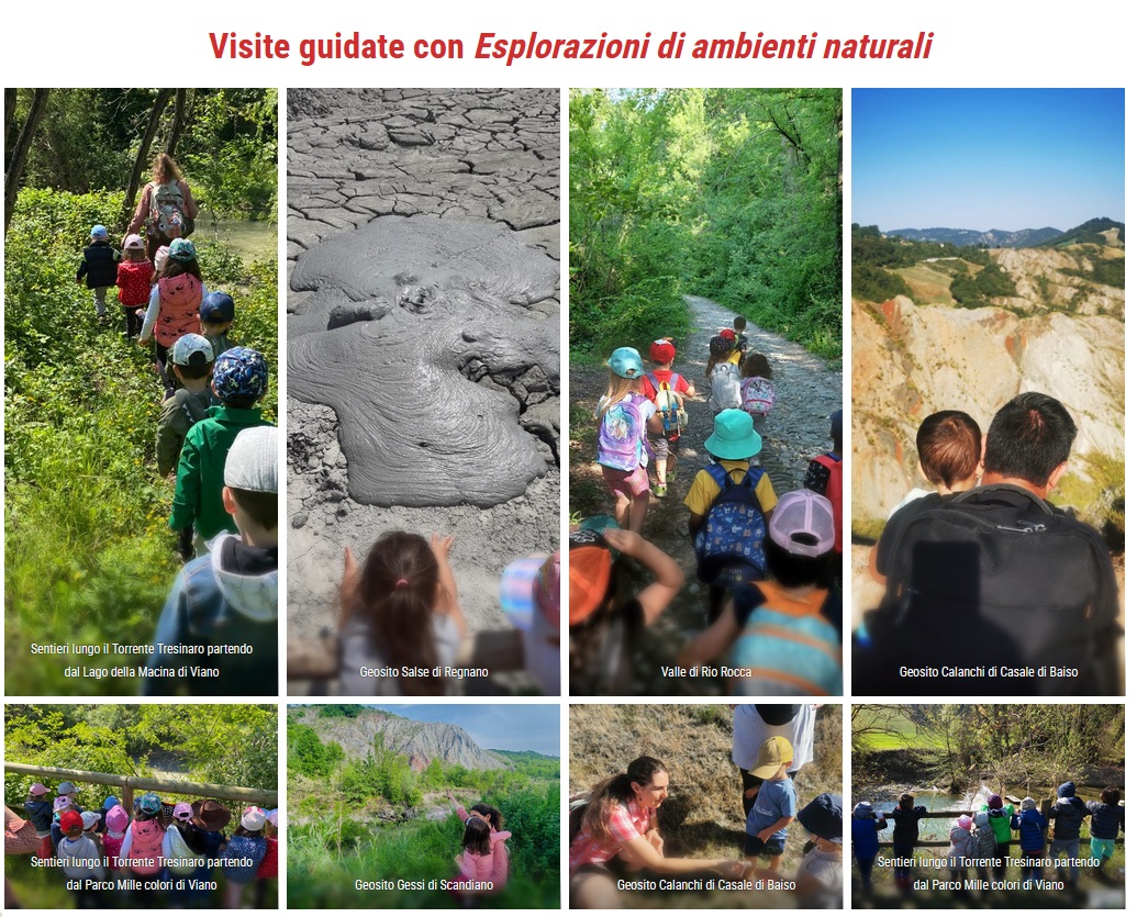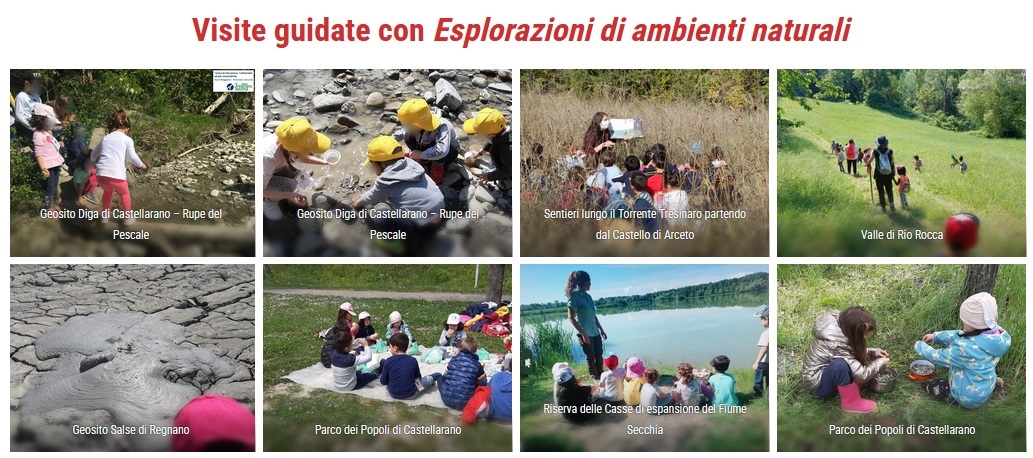 Semplici uscite che hanno come obiettivo quello di scoprire il nostro territorio: fiumi e torrenti, colline e calanchi, stagni e salse, prati e boschi, argille e gessi. Questi sono solo alcuni dei luoghi che si possono scoprire seguendo questo itinerante percorso dove l’uscire fuori è il fulcro dello studio stesso. Questi alcuni dei luoghi in cui si possono fare piacevoli esperienze: